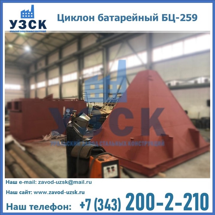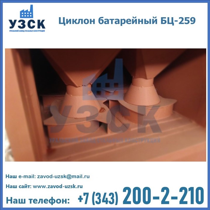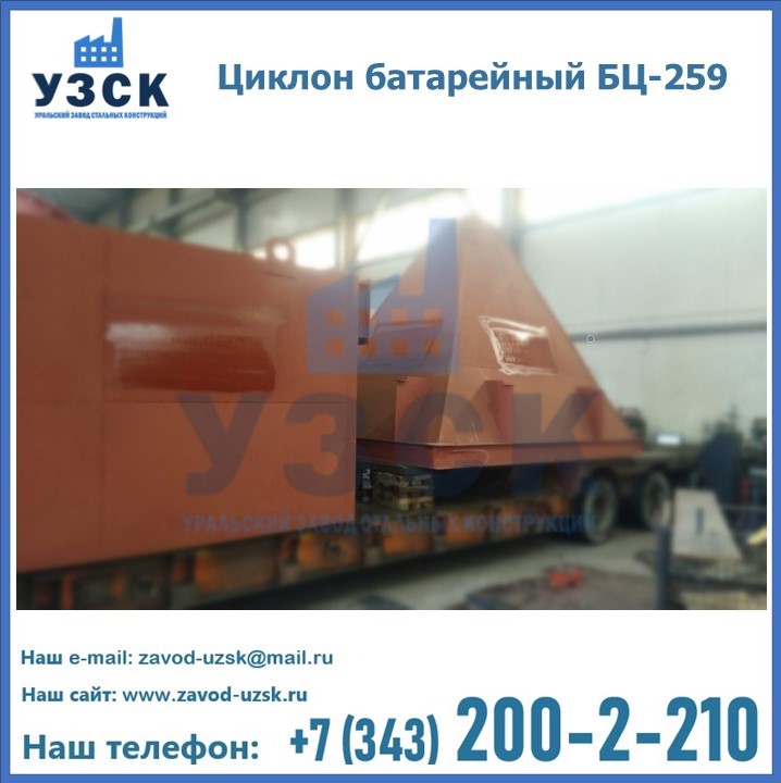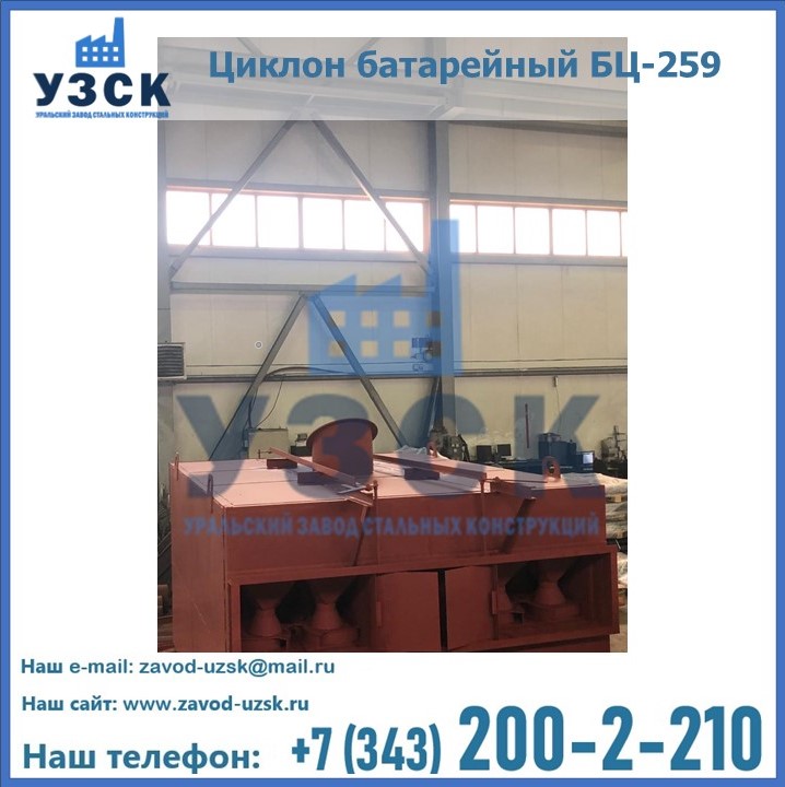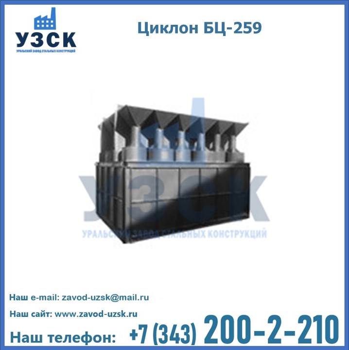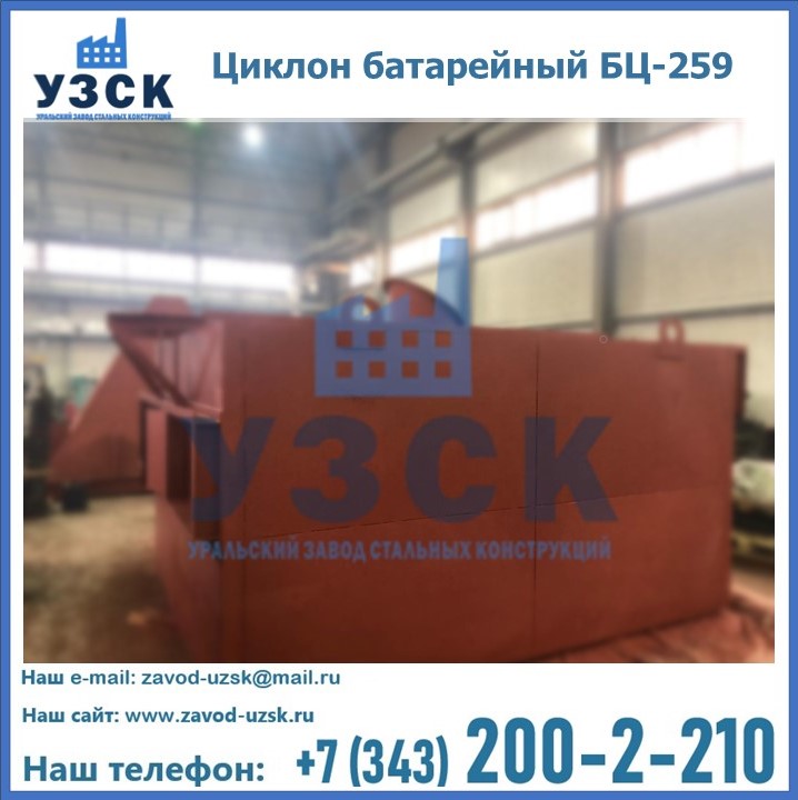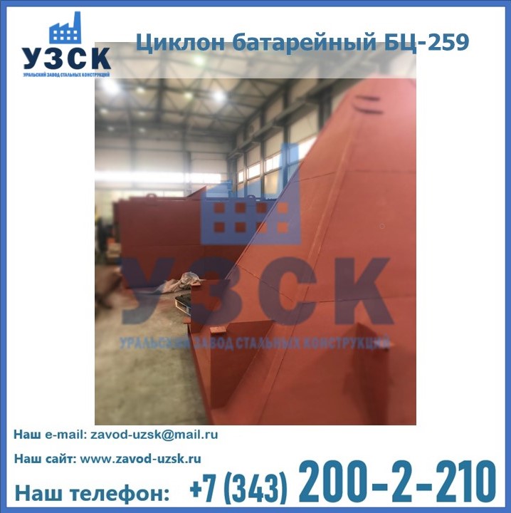 Приобрести качественное оборудование, в том числе, циклоны БЦ-259, можно в компании УЗСК в Узбекистане. Мы предлагаем долговечную и надежную продукцию по приемлемой цене. Заказать и купить циклоны или другие изделия высокого качества можно через сайт Уральского Завода Стальных Конструкций, или позвонив по указанному в разделе «Контакты» телефону.