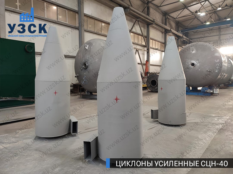 Циклоны СЦН-40 являются очистительной системой, обладающей более качественными показателями выноса вредных примесей в сравнении со всеми другими моделями циклонов, при этом энергозатраты у них всех одинаковы. Уральский завод стальных конструкций в Узбекистане занимается продажей готовых циклонов СЦН-40, а также проектированием, сервисным обслуживанием пылеуловителей и осуществляет монтажные работы циклонов.