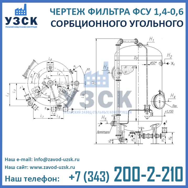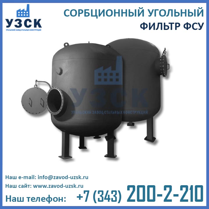 Isitish va sanoat qozonlari, kondensat va tabiiy suv tozalash liniyalari, elektr stantsiyalarining yuqori sifatli ishlashini FSU tipidagi ko`mirli sorbsiya filtri — bitta silindrsimon kamerali vertikal idish bilan ta’minlanadi. Uskunaning asosiy maqsadi ishlab chiqarishdan qaytgan kondensatni hidlar, organik ifloslantiruvchi moddalar va ta’mlardan chuqur tozalashdir. Suvni tozalash tizimlarida FSU dan foydalanish moddani moylardan, organik aralashmalardan, neft mahsulotlari qoldiqlaridan normal ahamiyatgacha — 0,52-1,0 mg / l gacha tozalashni kafolatlaydi. O‘zbekistonda ko`mirli filtrlarini sotib olishni bizning Ural temir konstruksiyalari zavodimiz taklif qilmoqda. Biz FSU ishlab chiqarishni korxona ehtiyojlari asosida amalga oshiramiz, FSU sorbsiya filtrlarini zanglamaydigan po’latdan, shu jumladan korpus va ichki qurilmalardan ishlab chiqarish mumkin.