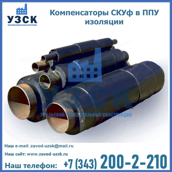 Если трубы для прокладки усилены теплоизоляцией ППУ, то на них допустимо устанавливать только cильфонный компенсатор СКУф в ППУ с такими же размерами теплоизоляционного слоя. На данный момент, такие устройства считаются одними из наиболее надежных, эффективных и долговечных элементов, способных обеспечить бесперебойную работу трубопроводов. На заводе «УЗСК» вы можете купить СКУф ППУ и другие компенсаторы по приемлемой цене, от надежных производителей. УЗСК осуществляет поставки сильфонных компенсаторов СКУ в ППУ любых типоразмеров. Наше предприятие поставляет и производит оборудование, имеющее длительную гарантию и большой эксплуатационный ресурс. Если требуется изготовить нестандартное изделие, то такой вариант выполнения заказа тоже предусмотрен, так как предприятие имеет собственные производственные площади и надежных поставщиков. На все оборудование имеются чертежи и прочая техническая документация. Чтобы заказать сильфонный узел СКУф в ППУ изоляции в Узбекистане необходимо направить запрос через форму онлайн-заказа на сайте или связаться с нашими специалистами по телефонам, указанным в разделе «КОНТАКТЫ .