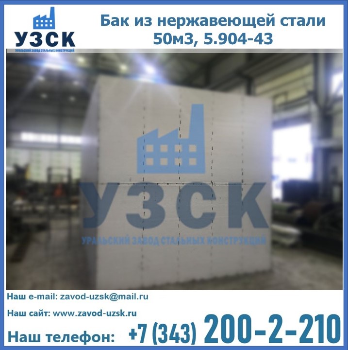 Atmosfera bosimi ostida ishlaydigan tanklarni ishlab chiqarish, to’rtburchaklar, 5.904-43 standart uskunalari qatoriga kiradi. Tanklar Узбекистане da sho’r, isitish va sovuq suvni saqlash uchun mo’ljallangan. Uskunalar ortiqcha bosim holda o’z-o’zini tekislash kabi havo shamollatish tizimlari ishlatiladi.