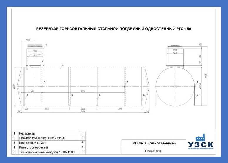 РГСДн-50: горизонтальный резервуар двустенный наземного расположения;